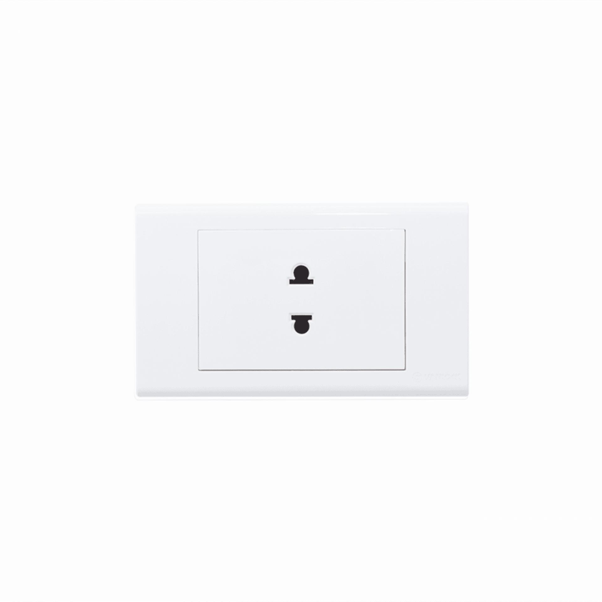 - Đế ổ cắm làm bằng nhựa Polyamide chống cháy – nguyên chất (không có mùi khét như nhựa phế liệu, tái sinh).